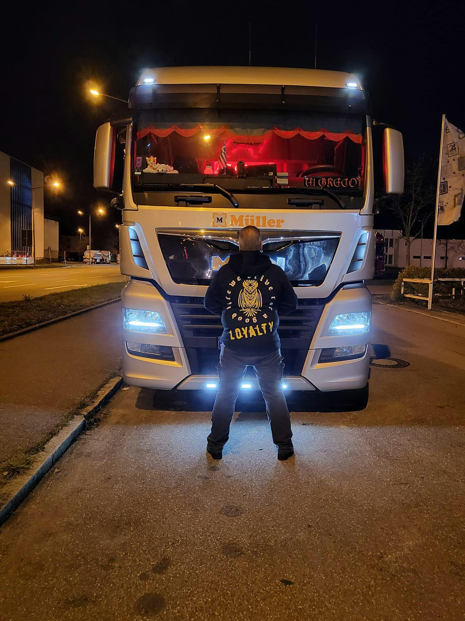 Kleines Brustlogo ,,Convoy78," Großes Eule-Logo auf dem Rücken ,,wedrive for a good life" Loyalty 65% Baumwolle/35% Polyester Grammatur: 300g/m